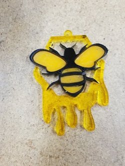 The bees are 2.75inches x 2inches and made with 1/4th inch acrylic.