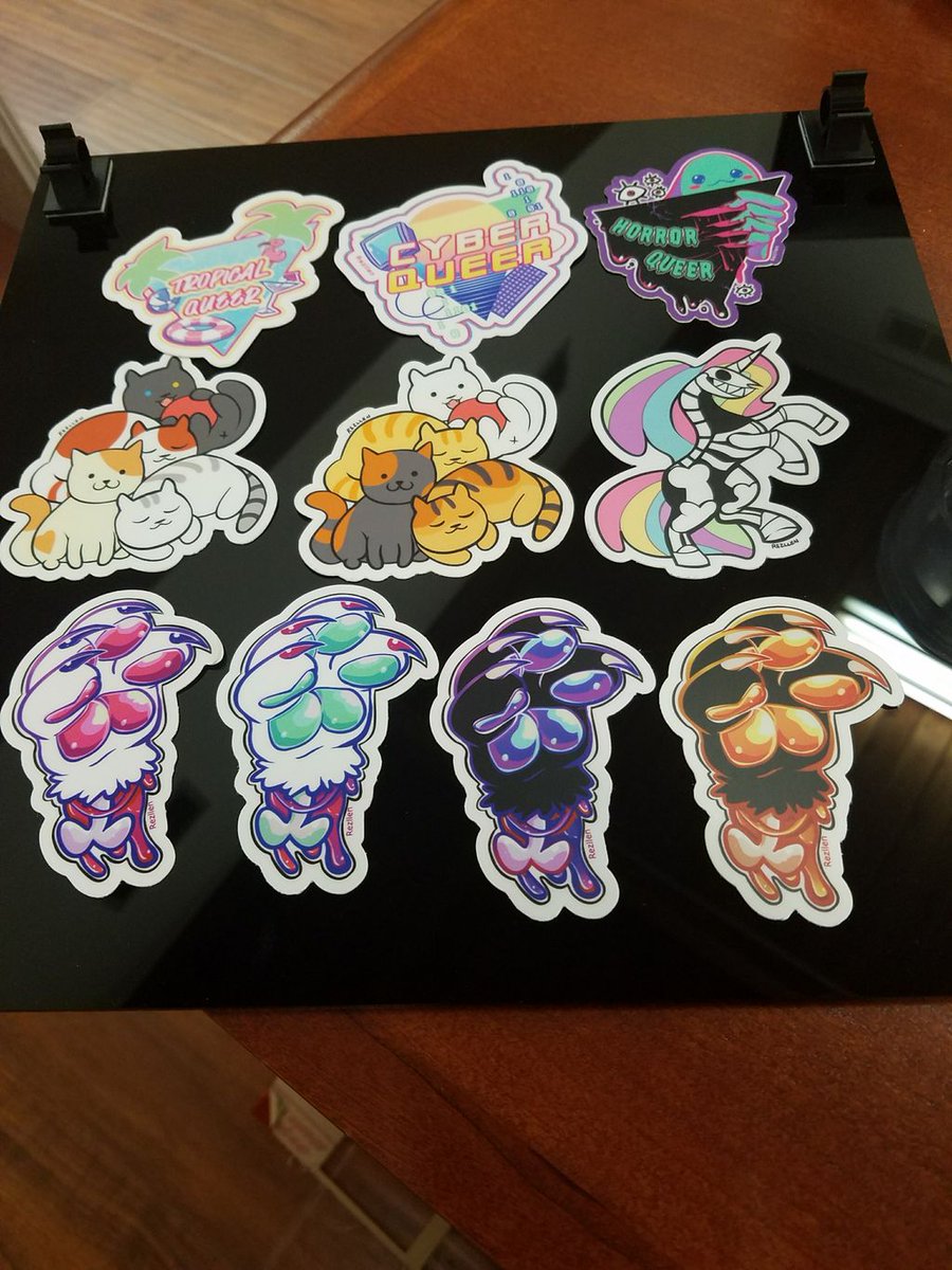 These stickers are 3inches tall, vinyl, and water resistant. They can be purchased either separately or in a group.
