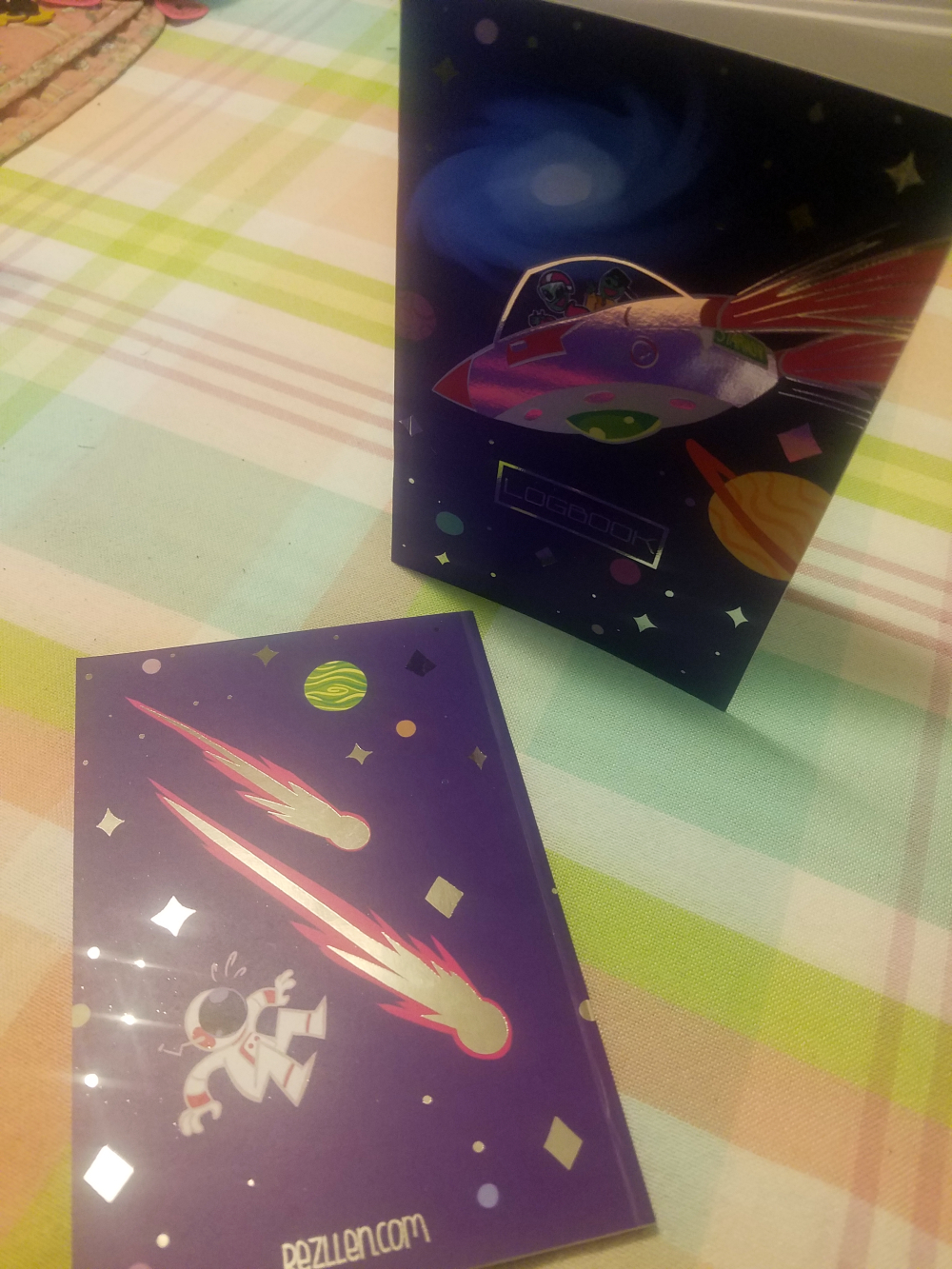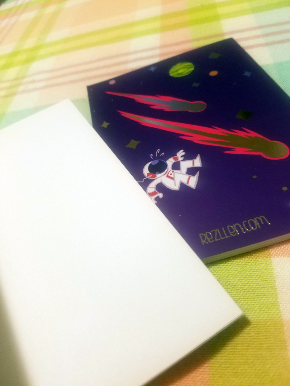 5.8 x 8.3 in 140lb smooth white cardstock cover with dotted 24lb inside paper- perfect for drawing! The books have silver foil accents and are saddle stitched binding.