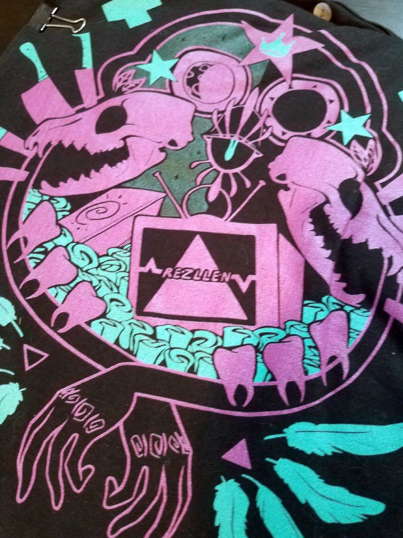 Screen printed soft cotton shirts with a funky surreal design. Big comfy 10/10. Would wear this to relax while drinking hot cocoa.
