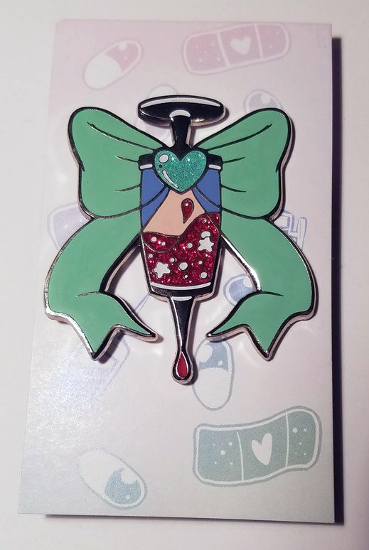 2 inch silver platted enamel pin.