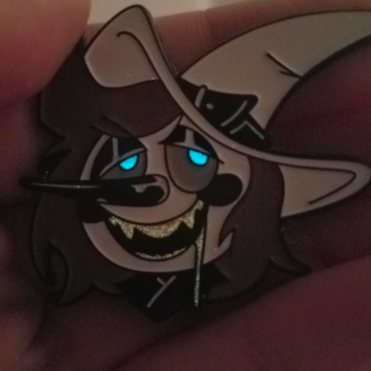 A glow in the dark soft enamel pin! A perfect spooky boy for Halloween! Based off my character Denjis from my webcomic Blood Sugar!